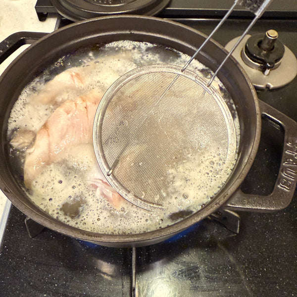 - 깨끗하고 맑은 국물을 유지하기 위해 쓰레기를 조심스럽게 걷어냅니다.