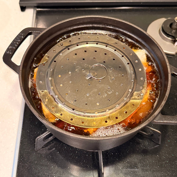 - 재료를 완전히 담그고 균일하게 끓이려면 오토시부타(방울 뚜껑)를 사용하세요.