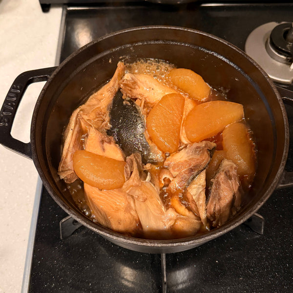 풍부한 호박색 마무리를 얻으려면 끓이는 동안 생선과 무가 완전히 물에 잠기는 것이 중요합니다. 서빙하기 전에 접시를 식혔다가 다시 가열하면 색과 맛이 더욱 향상됩니다. 이 휴지 시간은 맛을 깊게 하기 위해 일본 조림 요리에 자주 사용되는 전통적인 기술입니다.