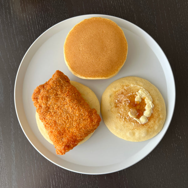 아쉽게도 핫케이크맨은 계절메뉴라 이 레시피를 테스트할 당시에는 구할 수 없어서 빵 코너에 있는 일년 내내 판매되는 "펀와리(푹신푹신) 핫케이크"로 대체했습니다. 콤보가 정말 훌륭했으니 제 레시피의 마지막 부분에서 꼭 확인해 보세요!