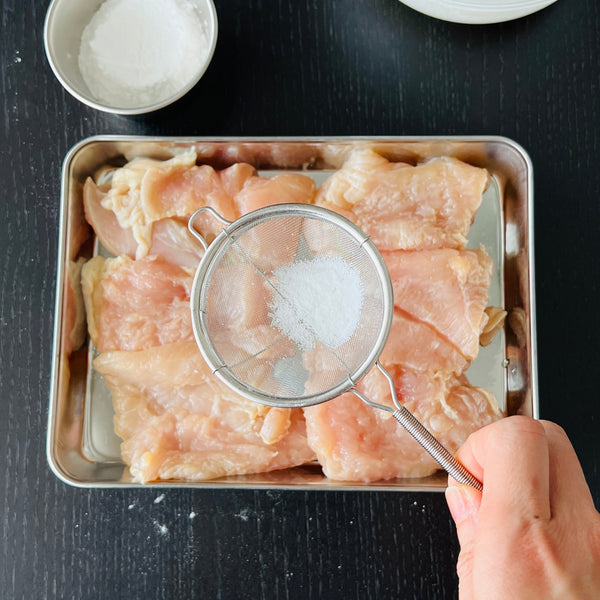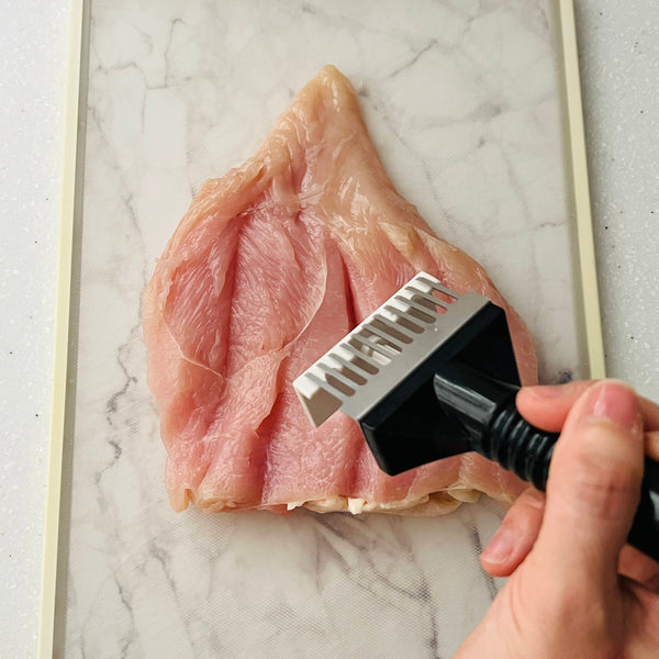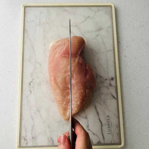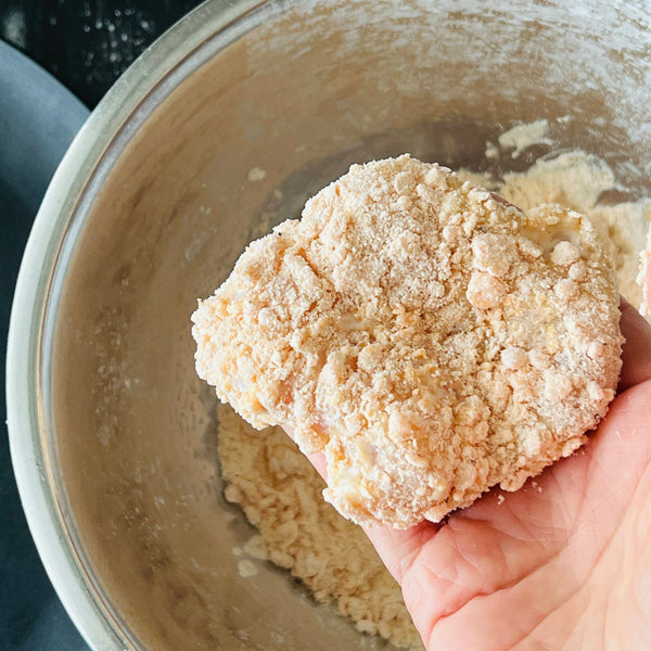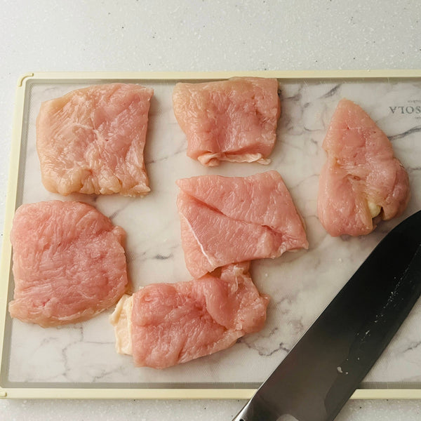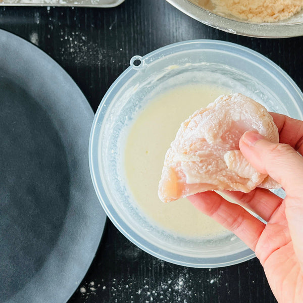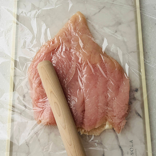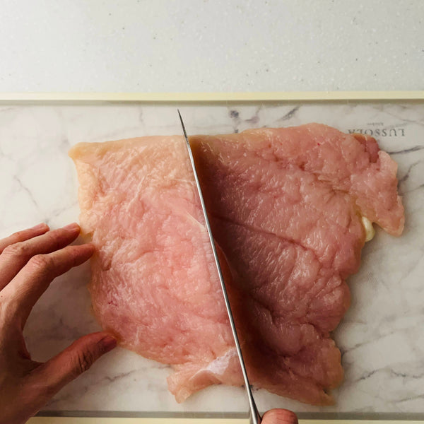 공식 홈페이지에 따르면 파미치키는 육즙을 더하기 위해 닭다리살을 사용해 만든다고 합니다. 하지만 제 레시피에서는 닭가슴살을 선택했습니다. 고르게 펴는 것이 더 쉽고, 더 일관되게 요리할 수 있기 때문입니다. 고기를 부드럽고 촉촉하게 유지하기 위해 육즙을 가두고 닭고기가 건조해지는 것을 방지하는 특별한 단계를 준비 과정에 추가했습니다.