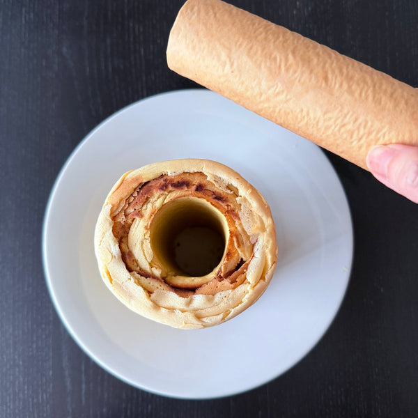 "바움쿠헨"이라는 이름은 독일어로 "나무"(baum)와 "케이크"(kuchen)를 의미하며 각 조각 내부의 아름다운 고리 모양 패턴을 반영합니다. 바움쿠헨은 독일의 고전이지만, 독일을 여행하는 동안 널리 보급되지 않고 다양성이 상당히 제한되어 있다는 사실에 놀랐습니다.