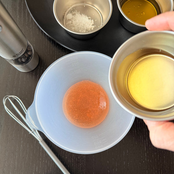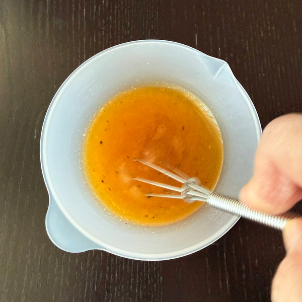 - 점차적으로 오일을 첨가하십시오: 오일을 천천히 섞으면서 안정적인 에멀젼을 만들어줍니다.