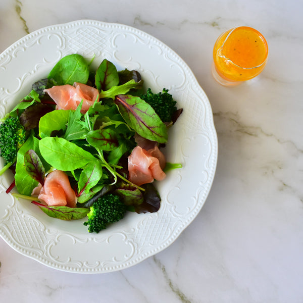 자몽 비네그레트는 감귤류를 베이스로 한 가볍고 상큼한 드레싱으로 달콤함, 톡 쏘는 맛, 약간 쓴맛이 균형있게 어우러져 있습니다. 이 비네그레트는 따뜻한 계절에 특히 맛있고, 치즈, 아보카도, 절인 고기 등 풍부한 재료와 곁들일 때 더욱 좋습니다. 미각을 상쾌하게 하고 생동감 넘치는 시트러스 향을 더해 간단한 샐러드라도 더욱 세련되고 균형 잡힌 느낌을 줍니다.