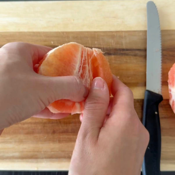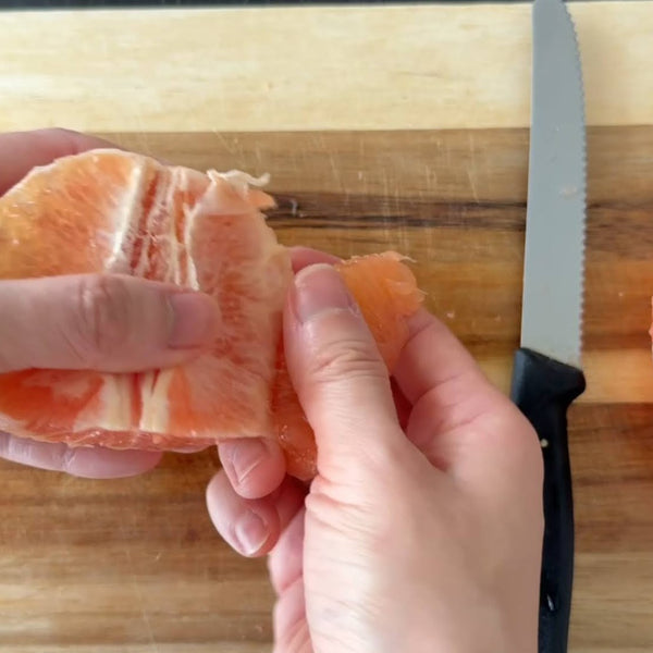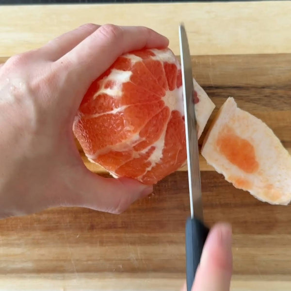 - 쓴 부분을 조심스럽게 제거하십시오.: 자몽은 껍질을 잘 벗겨내고 씨와 흰 속을 제거합니다. 이 부분은 시럽 맛이 씁쓸해질 수 있습니다.