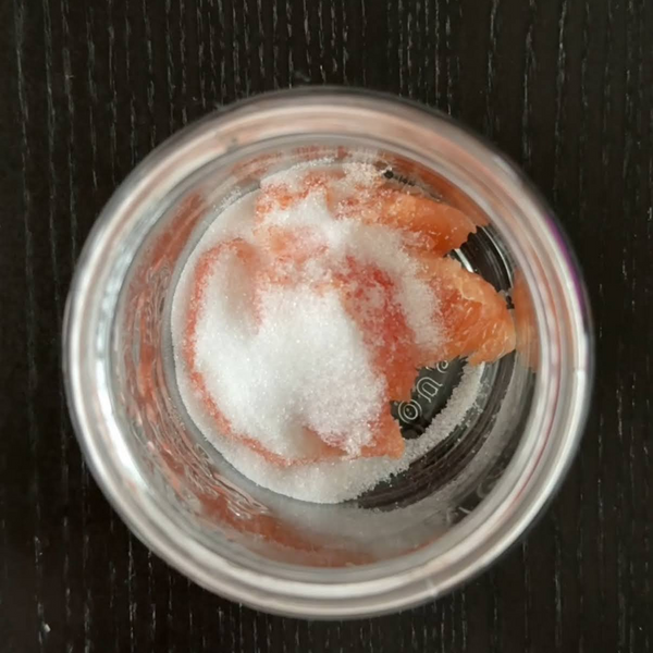 주성분 2 – 설탕: 설탕은 자몽의 자연스러운 신맛의 균형을 맞추고 시럽의 부드러운 질감을 만드는 데 도움이 됩니다. 설탕이 녹고 주스와 함께 조리되면서 약간 걸쭉해지고 감귤 향이 보존됩니다.