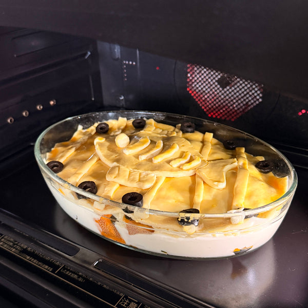 그리고 영화에서처럼 파이를 바구니에 담고 검은 천과 빨간 리본으로 포장해 키키의 모습을 반영했습니다. 서빙할 때 자신만의 창의적인 손길을 자유롭게 추가해 보세요!