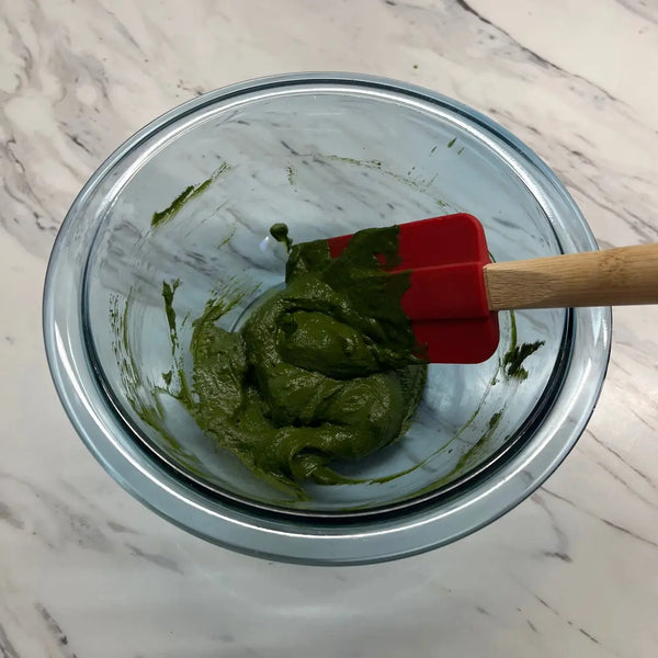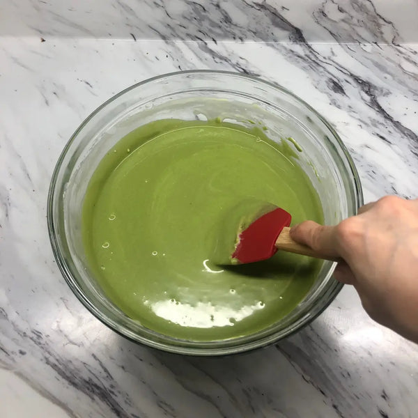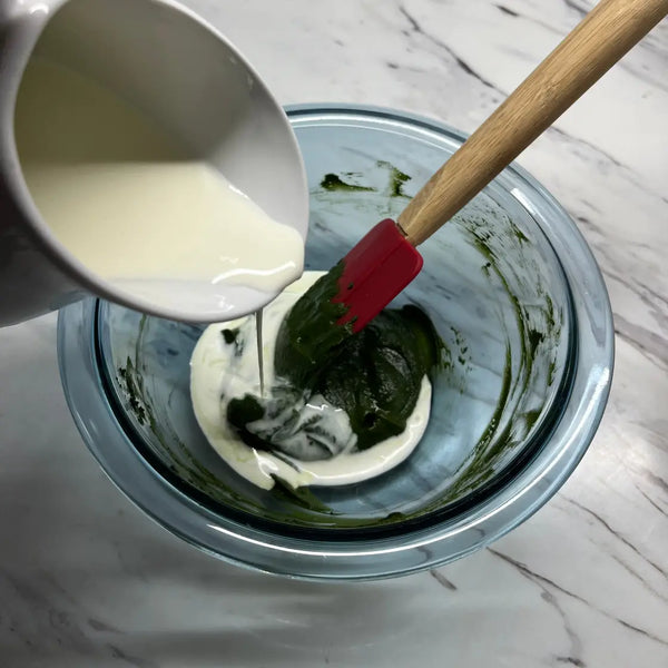 결합 말차 가루 약간의 뜨거운 물로 말차 페이스트를 만드세요. 잘 섞는다. 헤비 크림을 말차 페이스트에 붓습니다. 잘 섞어서 따로 보관해 두세요.