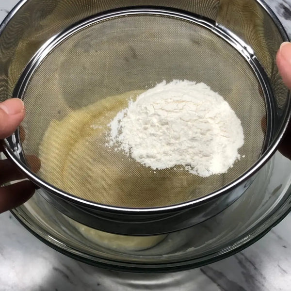 체로 치십시오 밀가루. 모든 것을 잘 섞으세요.