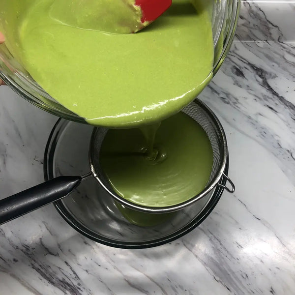6) 팬에 말차 치즈케이크 반죽 붓기