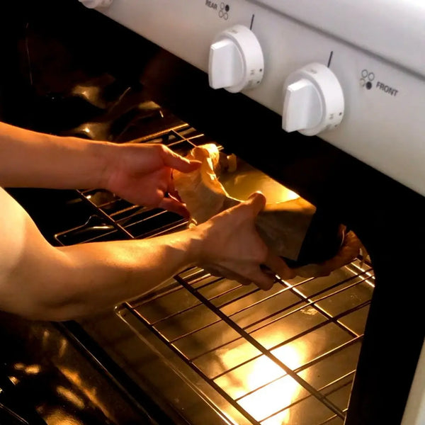 팬을 오븐에 넣고 28~30분간 굽습니다. (오븐에 따라 다르므로 35분을 초과하지 마세요.)
