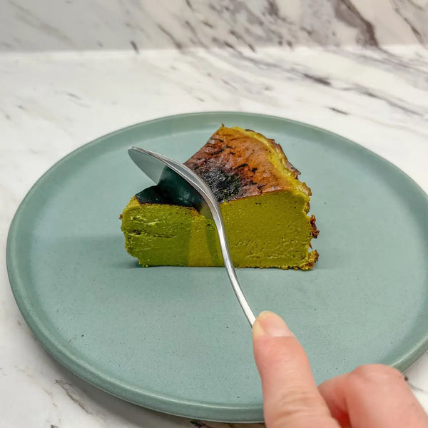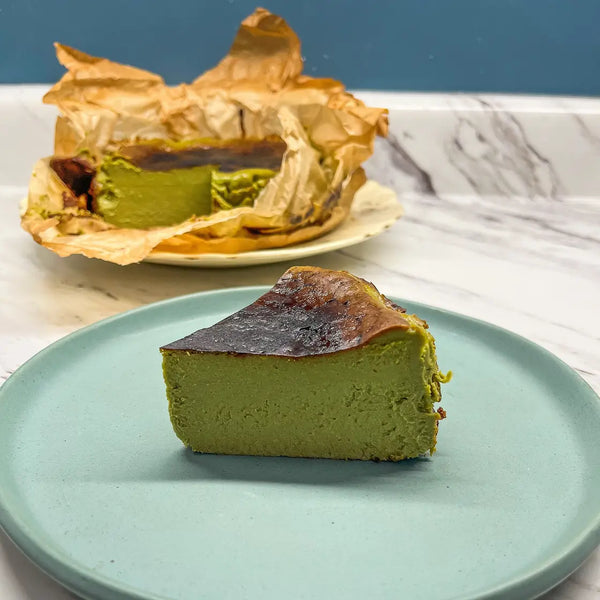 커피 향과 갓 구운 음식 향이 어우러지는 아늑한 카페에 들어가는 것을 상상해 보세요. 디저트 중에는 말차 바스크 치즈케이크가 있습니다. 캐러멜 처리된 상단은 녹색 측면과 대조를 이룹니다. 이 치즈케이크는 안은 크리미하고 겉은 바삭한 것으로 유명한 스페인 전통 치즈케이크를 변형한 것입니다.