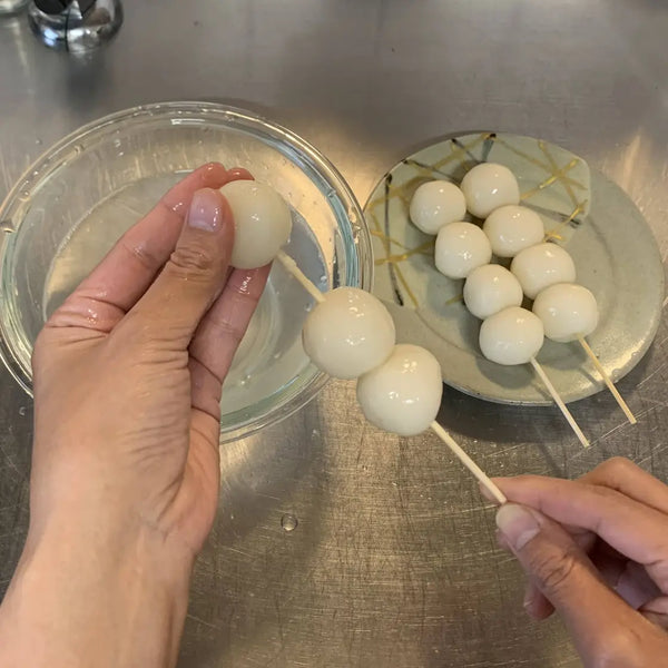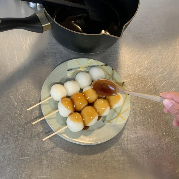 오늘은 시라타마 가루를 사용하여 더욱 부드럽고 매끄러운 식감을 구현하고 몇 가지 조리 단계만 거치는 매우 쉬운 미타라시 당고 요리법을 소개하겠습니다. 즐겁게 만들어주세요 일본식 과자 집에서!