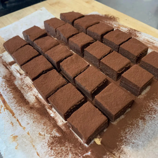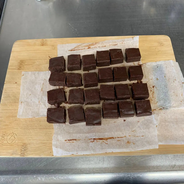 나마 초콜릿("생 초콜릿"이라는 뜻)은 초콜릿 가나슈와 헤비 크림을 풍부하게 혼합하여 큐브로 자르고 코코아 가루를 뿌려 만든 일본의 진미입니다. 일반 초콜릿과 달리 입에 넣는 순간 녹는 듯 매우 부드럽고 실키한 질감으로 깊고 진한 풍미를 풍기는 것으로 유명합니다.