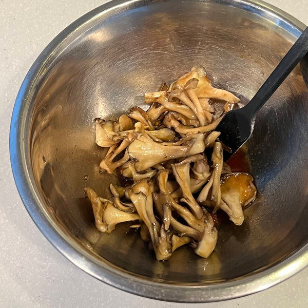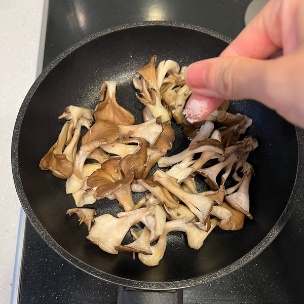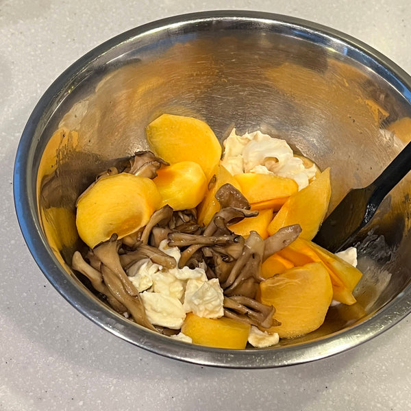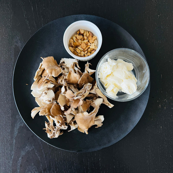 제 레시피에서는 "숲의 암탉"이라고도 알려진 잎새버섯을 사용합니다. 흙냄새와 약간의 쓴맛과 함께 풍부한 감칠맛을 선사합니다. 식감은 부드러우며 약간의 쫄깃함을 가지고 있으며 조리하면 육즙이 풍부하고 즙이 풍부합니다. 잎새버섯은 감과 잘 어울리며 맛과 식감 모두에서 대조를 이룹니다.