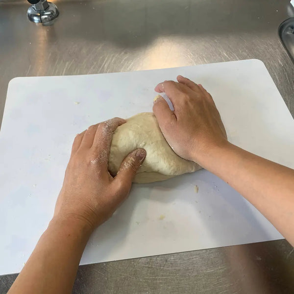 반죽을 접시에 옮기고 도마 또는 기타 깨끗하고 평평한 표면에 놓고 반죽을 계속 반죽하십시오. 반죽이 완전히 부드러워질 때까지 5~10분 동안 반죽하세요.