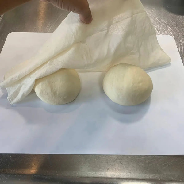 두 개의 반죽을 깨끗하고 평평한 표면에 놓고 반죽 사이에 약간의 공간을 남겨두세요. 건조를 방지하기 위해 꼭 짜낸 젖은 천으로 둘 다 덮고 실온에 15~20분 동안 놓아두세요.