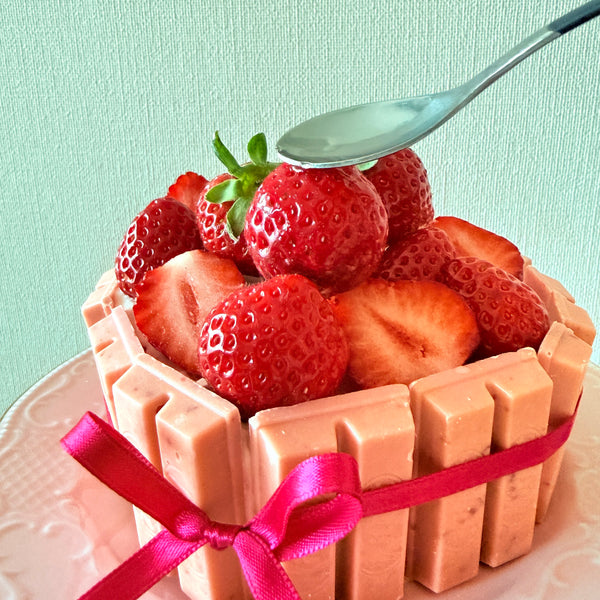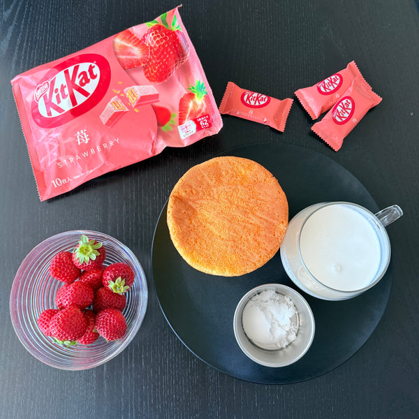 나는 만들었습니다 일본 전통 쇼트케이크 베이스로 사용하고 측면을 KitKats로 장식했습니다.