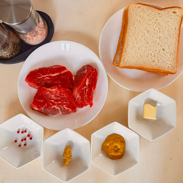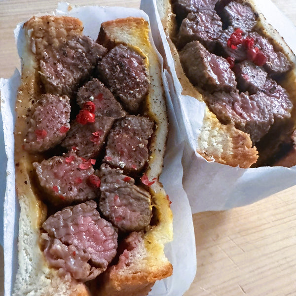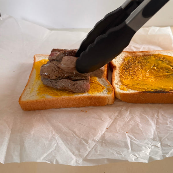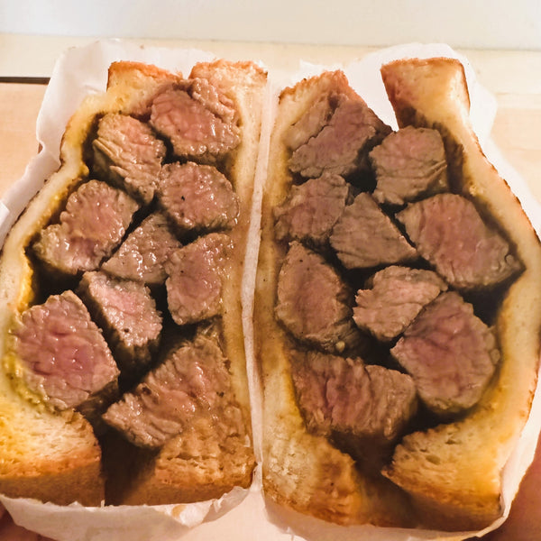 - 스테이크 블록을 두껍게 유지하십시오: 데카산 스타일 카츠 산도의 특징인 희귀하고 육즙이 풍부한 중앙 부분을 얻으려면 3~4cm 두께의 블록을 목표로 하세요.