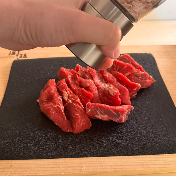 조미료: 단순소금, 후추 또는 산쇼 스테이크를 압도하지 않고 향상시킵니다.