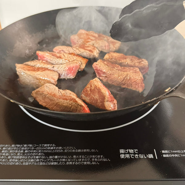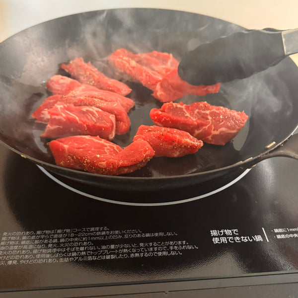 - 무거운 프라이팬– 스테이크를 고열로 구워 레어하고 육즙이 풍부한 센터를 만드는 데 필수적입니다.
